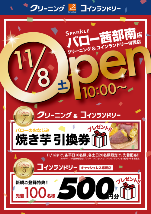 バロー茜部南店にスパークルOPEN|11/8(土)10:00〜/焼き芋引換券&コインランドリー500円分プレゼント